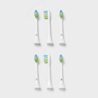 Enjoy a more captivating smile with up&up SmileSonic Pro Advanced Clean Replacement Brush Heads. The high-density bristle design and the advanced clean tip provide a more effective cleaning experience, removing up to 7 times more plaque than a manual toothbrush (based on in vitro laboratory testing). They are also great for targeting hard-to-reach areas between teeth, removing stuck food particles with ease. The Replace-Me bristles fade with use to remind you when to replace your brush head.